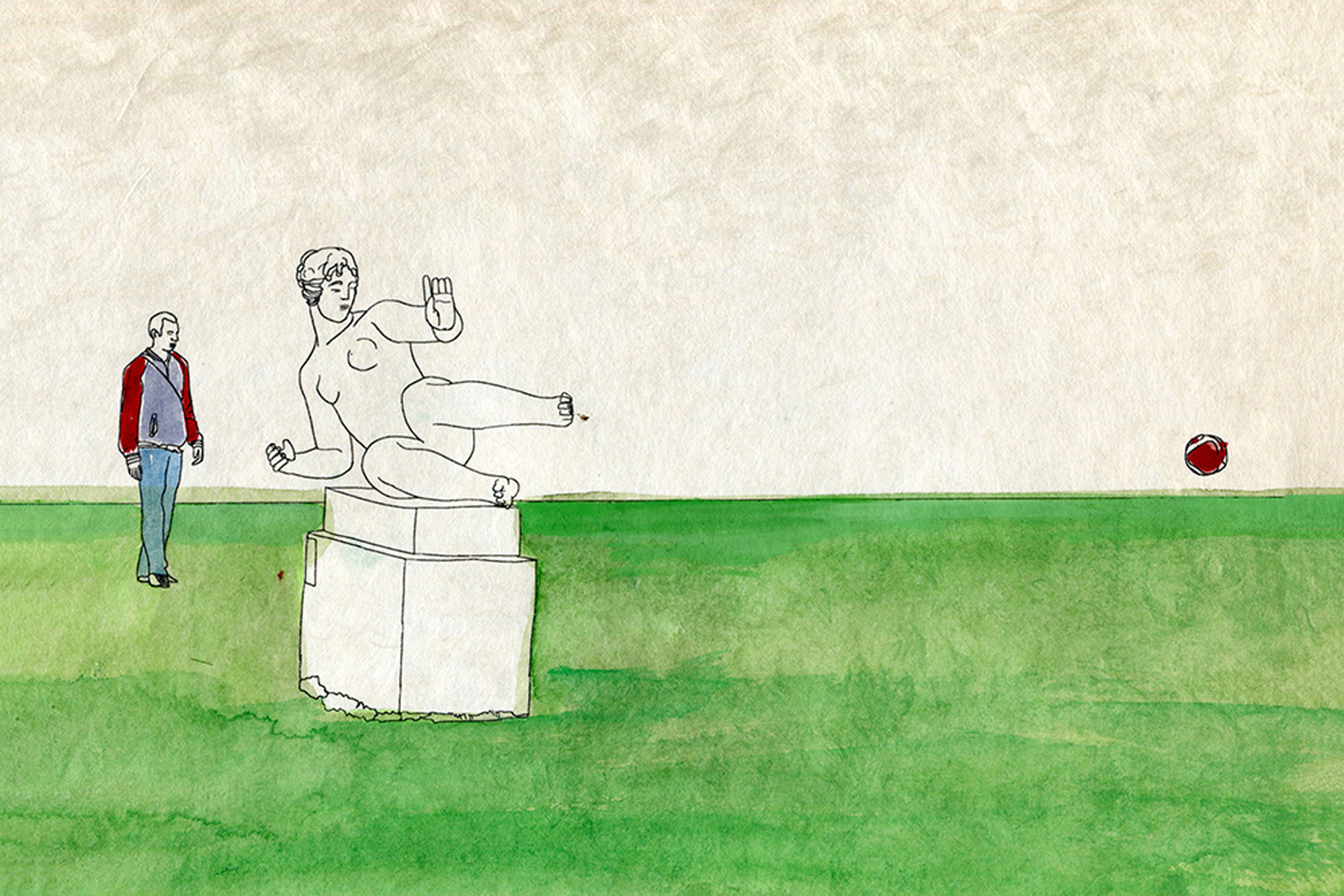 Im Jardin des Tuileries zischt ein Fussball haarscharf an meinem Kopf vorbei. Ich drehe mich um und es sieht aus, als hätte eine Skulptur von Maillol den Ball in meine Richtung gekickt.