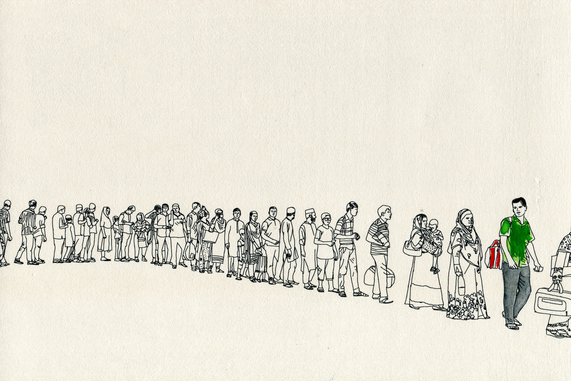 Der Dhaka Art Summit erwartet 35000 Besucherinnen pro Tag. Viele besuchen diese Ausstellung wie einen Park, statt Bäumen, Büschen und Blumen schaut man sich